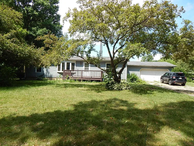 Hobby farm on five acres with ranch home, split bedroom floor plan, main bedroom with 3/4 bath and mainfloor laundry. Access to basement is through the oversized two car garage. Newer barn, storage unit with porch, turkey and chicken accommodations, custom made fireplace and back porch. Archway room off livingroom could be third bedroom.