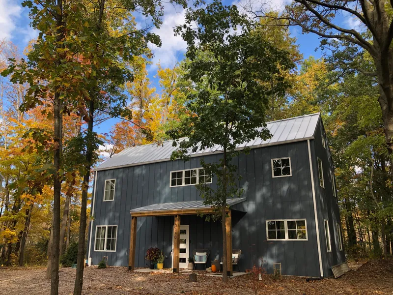 For every time of year. NEW in 2021, on 2.2 wooded acres, in a community of newer homes on the edge of Michiana. Modern farmhouse, just between New Buffalo and Michigan City and short way to Lake Michigan beaches.Three bedroom, (one on main level) , 2 bath, city water/sewer and high speed internet. Low maintenance, on demand hot water, radiant heat floors, metal roof, energy efficient zoned heating and cooling, on demand hot water. Large parcel with storage shed and room for detached garage or pool. No HOA fees, suitable for year round or vacation residence or investment opportunity (rental history). Property extends behind residence to preserve area. Minutes to Lake Michigan beaches, marinas, golf, wineries, dining, parks and all of Harbor Country. Just over an hour by train or interstate to downtown Chicago. Furnishings available separately. Lovingly and well maintained.
