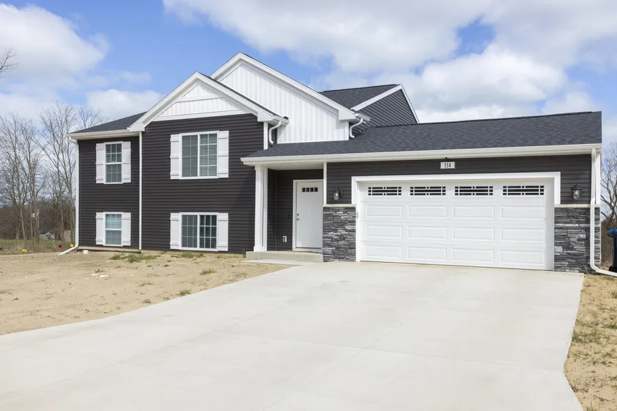 This newly constructed home was completed in November 2024. This home has several builder upgrades making it stand above the standard spec home! Tucked away on a premium lot in a sought-after new subdivision, this spacious 3-bedroom, 3-bath home offers 2,190 square feet of stylish, flexible living--perfect for remote professionals, or weekend hosts. The open-concept main level features a sun-filled great room and a well-appointed kitchen with an island, creating a seamless space for entertaining or everyday comfort. A versatile den can easily transform into a home office, formal dining room, or guest suite, offering the flexibility today's homeowners crave. The main floor primary suite is a true retreat, complete with a private bath and oversized walk-in closet. Downstairs, the expansive recreation room adds valuable living space--ideal for a media room, play area, or home gym--alongside two additional bedrooms and a full bath. Enjoy the outdoors from the large deck, or take advantage of the home's unbeatable location near expressways, Lake Michigan beaches, casinos, and shopping. With a two-car attached garage and modern layout, this home is move-in ready and designed for the way you live today.