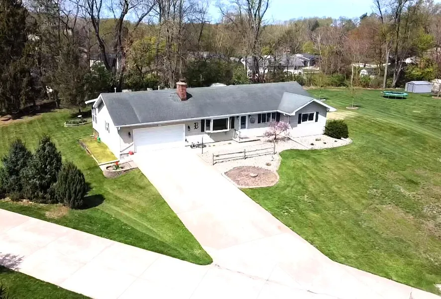 WELL-MAINTAINED RANCH & GREAT LOCATION!This charming 3-bedroom home is nestled on nearly 3/4 of an acre in a desirable cul-de-sac location. The main level features hardwood floors in the bedrooms and possibly under the carpet in the living room and hallway. Enjoy a spacious living room with a cozy brick fireplace and bay window, open to the dining area with a large picture window. The well-designed kitchen offers an eat-at counter and flows seamlessly into the dining space - perfect for everyday living and entertaining. A large enclosed porch extends the living area, and a back door leads out to the deck for outdoor enjoyment. The main level includes 3 bedrooms, 1 full bath, and 1 half bath.The full basement adds value with an ADDITIONAL HALF BATH, a laundry room, office or storage room, work area, plenty of storage space, and a large rec room that's already studded and ready for drywall. Completing the home is an attached 2-car garage. Location, space, and potential all in one!