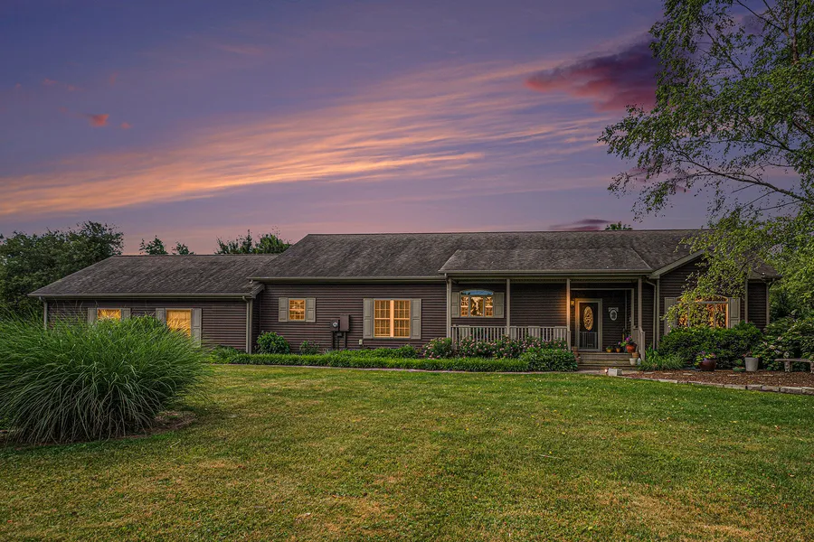 Peace and serenity abound on this beautiful country retreat, which includes 3.26 acres of woods, fruit trees, koi pond and gorgeous landscaping! The 15'x30' cottage could be finished and used as a vacation rental, with its running water, electricity, two lofts, and insulated back room! Wander around the property and find a shaded picnic area, a fire pit and woods with a tranquil clearing. In the front yard is an abundance of fruit trees (apple, pear, peach, plum, cherry and pawpaw) and an asparagus garden. Enter the home through the front foyer and marvel at the high ceilings and spacious open floor plan. Step into the large kitchen with newer stainless appliances, an island and ample cabinetry. Gaze from there into the open living area and dining area with tray ceiling. Two sets of extra wide sliding doors lead out to the huge deck, which is reinforced for a hot tub and includes a natur...