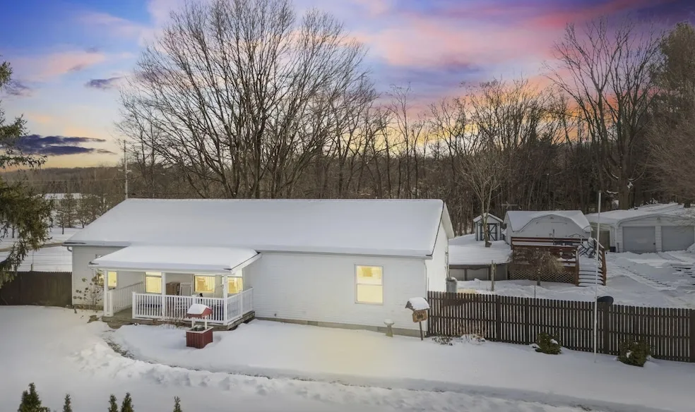 Nestled in the heart of highly sought-after Galena Township on a 2.86 acre lot, this charming residence offers the perfect blend of quiet country living and meticulous modern care. From the moment you arrive, the inviting front porch beckons you to sit back, relax, and take in the view. It is a front-row seat to nature, where you can spend your mornings watching local wildlife or simply peering across the serene, sun-drenched open fields that define the beauty of this area. Step inside to find a home that radiates warmth and pride of ownership. Having been recently painted and extremely well cared for, the interior feels fresh and ready for its next chapter. The heart of the home is a generously sized kitchen boasting plenty of counter space for meal prep and gatherings, flowing seamlessly into a cozy living room designed for relaxation. The thoughtful layout includes three nicely sized bedrooms, featuring a spacious primary suite complete with its own private bath for a touch of secluded comfort. The magic continues outdoors, where the backyard transforms into your own private summer oasis. A large deck provides the ideal setting for weekend cookouts, overlooking a sparkling above-ground pool that promises relief on those warm afternoon days. Beyond the leisure space, the property offers practical benefits with two detached storage buildings, perfect for housing your cars, outdoor equipment or hobby supplies. This home isn't just a place to live; it is a retreat from the everyday hustle that you truly have to see to appreciate.