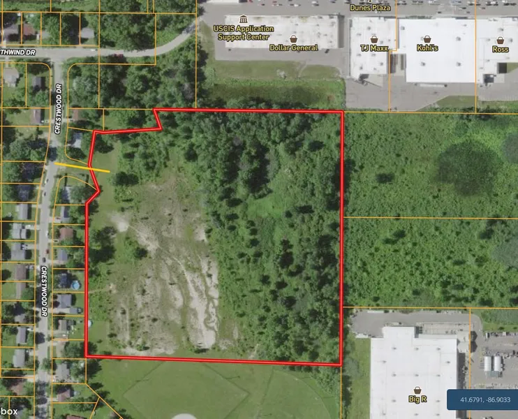 Great undeveloped potential on this 16.6 acre property located in the heart of Michigan City, IN. This property's access is off Crestwood Drive and sits behind the Dunes Plaza where multiple stores are located. Adams Park borders the south part of this property. The property sits just .8 mile north of Interstate 94, which will give easy access for travel to and from Chicago. For more information, contact Listing Agent, Brecken Kennedy, at (260) 578-7661