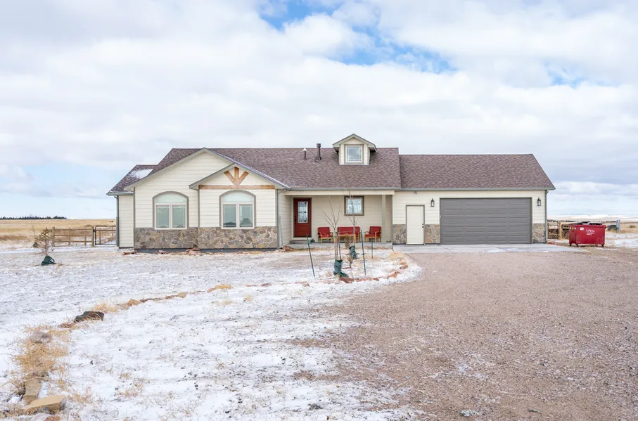 Own your own 35 acres just 15 minutes East of Cheyenne. Beautiful home built in 2019 with gorgeous hardwood floors, vaulted ceilings with timber accents, and plenty of windows to enjoy country living. Enjoy your morning cup of coffee in front of the fireplace. Covered back patio perfect for watching the beautiful Wyoming sunset; with huge fenced backyard. Tree rows on a drip system have been established & starting to grow into a weather/privacy block. This home is a must see!