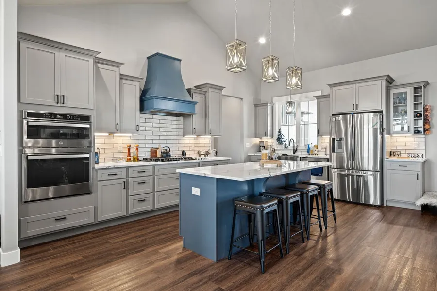 MOTIVATED SELLER!! Beautiful, newly constructed, four bedroom, four bathroom, custom designed home on 4 acres just minutes from shopping and other amenities. This open concept floor plan is all one level, 12 foot ceilings and handicapped accessible. Designed to allow for caregiving, the east wing consists of a private entrance, heated floors in both bedrooms and half baths, and the walk-in, curbless fully tiled shower. The great room, dining and kitchen open to the fully covered back patio where you can enjoy the beautiful Wyoming sunsets. The back patio boasts stamped concrete, 55" smart tv with storm box, 240 amp wiring for your hot tub, and a unique 4000 lb rock with a Brio insulated double wall wood burning firepit for those chilly evenings. The gourmet kitchen has quartz countertops, soft-close, custom cabinetry, 42" upper cabinets and stainless steel appliances, including a 5 burne...