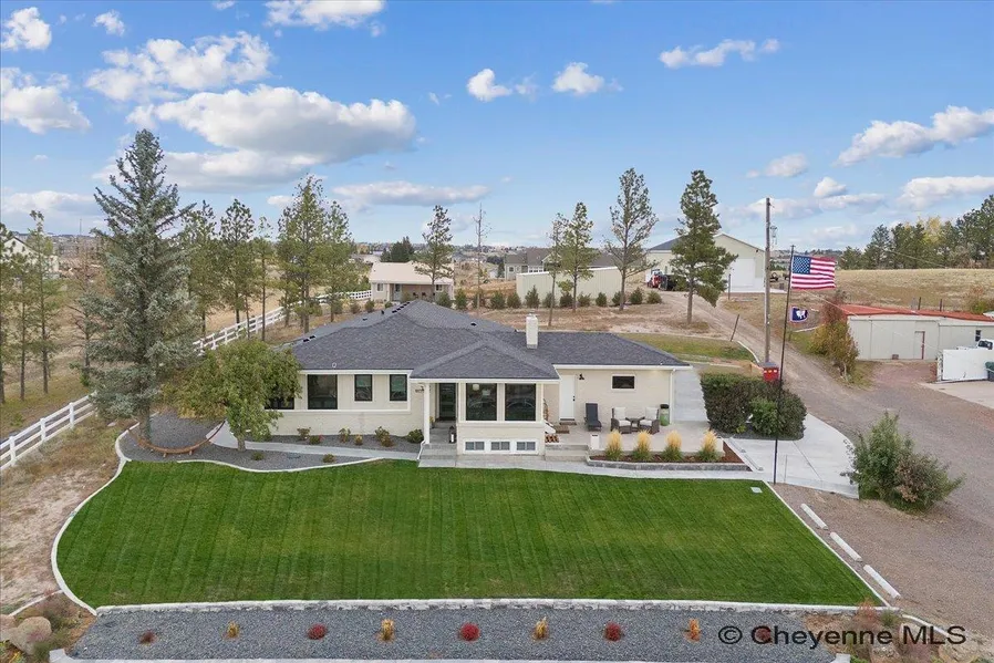The perfect blend of rustic elegance and modern convenience in this stunning four-bedroom, three-bathroom ranch style home nestled on 2.34 acres overlooking Cheyenne and beyond. Surrounded by open skies with amazing views, this property provides a tranquil escape while providing easy access to shopping, schools, and dining. Completely remodeled in 2022-2023 with custom finishes throughout. This home has a new septic system, all new plumbing, HVAC, roof and window replacement, complete landscape, sprinkler and drip system, nothing in this home went untouched. This property also boasts a quaint detached dwelling that could be used for an Airbnb or in-law suite. A 35x50 shop with spray foam insulation, electric, concrete floors, and driveway. Don't miss this perfect balance of seclusion and convenience in this one of a kind property!