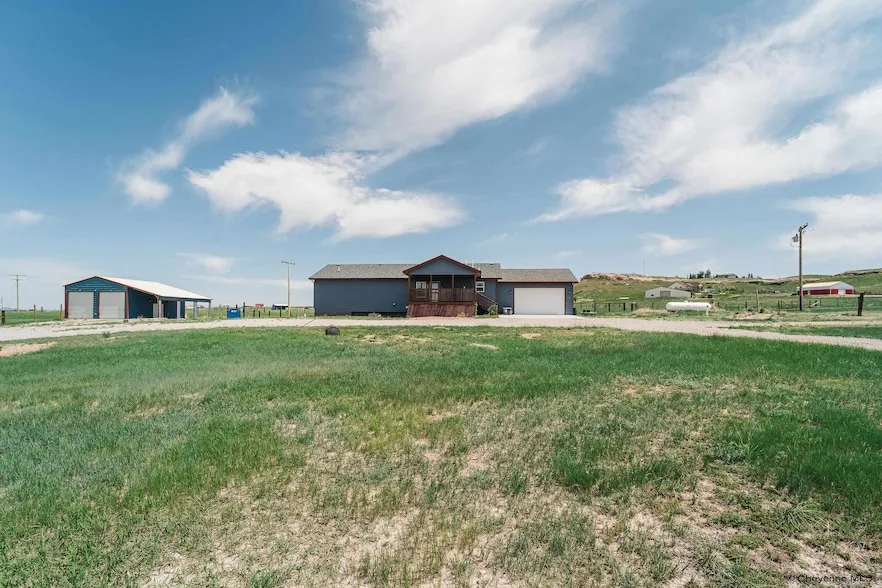 Embrace the beauty of country living with this stunning home on the range! Take in breathtaking views from every angle, with a covered porch that overlooks the rolling Wyoming hills. Built in 2022, this 5-bedroom, 3-bathroom modular home is designed for both entertaining and everyday comfort. The open-concept kitchen features granite countertops, while the wood-burning fireplace adds warmth and charm. Fresh updates include new carpet, pad, and LVT throughout, as well as new paint in several rooms. The primary bedroom features a spacious ensuite with a tub, shower, and double sinks. The partially unfinished basement offers the opportunity to add another bedroom or even a safe or wine room. The 24x30 outbuilding features concrete and electricity, with an additional 12x30 lean-to providing ample space for vehicles, a workshop, or extra storage for ATVs and small tractors. A 2-1 rate buy ...