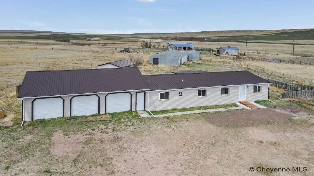 Welcome to your quintessential Wyoming retreat! This fully renovated manufactured home, nestled on 5 acres, offers the perfect blend of modern comfort and rustic charm. Located West of Cheyenne, this property promises tranquil living. Step into a bright and airy living space adorned with tasteful updates and ample natural light. The open-concept layout seamlessly connects the living, dining, and kitchen areas, creating an inviting atmosphere for gatherings and relaxation. The heart of the home features a chef's kitchen equipped with stainless steel appliances and granite countertops. Enjoy the convenience of two fully renovated bathrooms, complete with modern fixtures, and stylish tile work. Car enthusiasts and hobbyists will appreciate the spacious three-car garage, providing ample room for parking, storage, and workshop space. Whether you're tinkering with tools or storing outdoor gear...