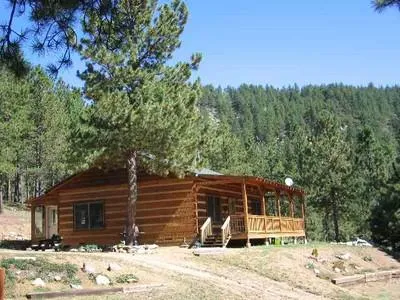 Custom built hand-hewn log cabin. Featured in Log Homes Illustrated! 2 bed/1 bath cabin on 3.27 acres adjoining National Forest. Tucked in the pines for privacy, year round access and self-contained. Beautiful beams, distressed wood floors, wood-burning stove, antique replica gas range/oven, Tharp cabinets and aluminum clad windows. Served by well/septic, solar/generator, propane, satellite and cellular. Mountain charm inside and out, offered at only $249,000.