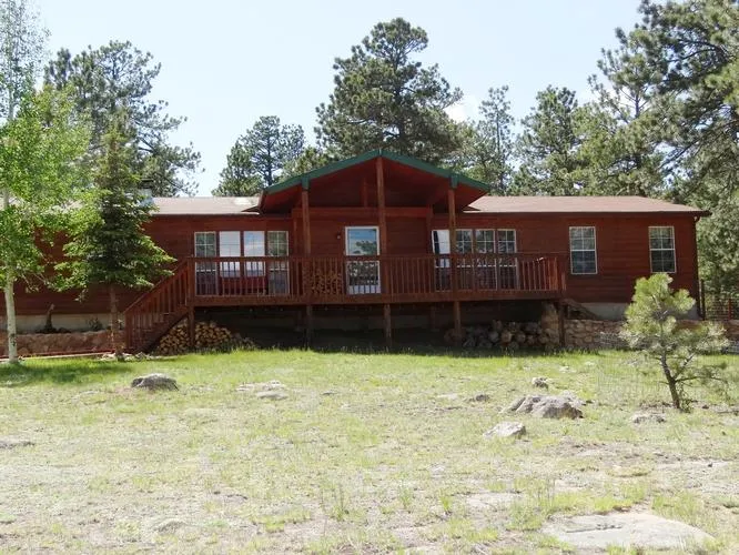 Large 3 bedroom, 2 bath home in the mountains that has been very well maintained. Home has hot tub, sauna all set in the private and peaceful back yard with flagstone patio. Open layout with a large living room, seperate family room and an office. Floor coverings are all newer. Garage is oversized and has a "man cave", seperate work shop and a ton of storage room. Property has been well taken care of and has a nice mix of pines, meadow area and a few aspens. Very cool dog run that goes from the deck to a private doggy haven!