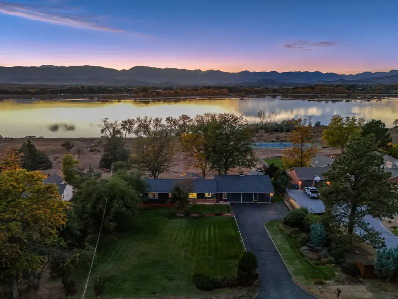 Welcome to this lake house retreat situated on nearly 2 acres with gorgeous views of the Front Range. This ranch style home boasts 4 bedrooms, 2 baths, and a spacious open-concept with the family and dining room opening to a large deck with a hot tub, large yard with lake and Mountain View's. The expansive 3-car garage includes a versatile office, study, or workshop with a hidden closet/gun room. Recent updates include a new class 4 roof, fresh paint inside and out, original hardwood floors, and a gas fireplace. This home has been lovingly maintained by its original owner since 1961. Generac generator only 3 years old. Home offers a permitted dock on the lake to enjoy breathtaking sunsets, or go boating (9HP boat motors or smaller) and fishing on the lake. Additional features include a storage shed and ample space for RV or camper parking. No HOA located just minutes from downtown Fort C...