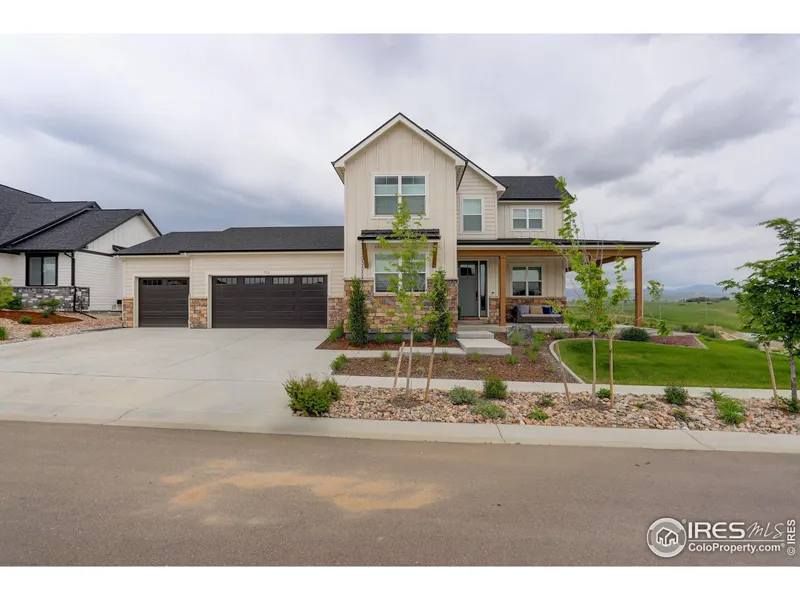 PRICE IMPROVEMENT!!! MUST SEE TO APPRECIATE!!! Luxury Living with Mountain Views in Harvest Ridge. This stunning custom home offers the perfect blend of elegance, comfort, and functionality. Featuring a gourmet kitchen with stainless steel appliances, quartz countertops, and a spacious pantry, this home is designed for both entertaining and everyday living. The living room fireplace and wood floors create a warm and inviting atmosphere, while luxurious accents and custom finishes elevate every space. The main floor office (which can serve as a 5th bedroom) includes built-in shelves, a desk and closet with a 3/4 bathroom nearby. Upstairs, a spacious loft/family room with custom built-ins is ideal for movie nights or a children's play area. The primary suite boasts breathtaking mountain views, a spa-like bathroom with an oversized shower and soaking tub, and a large walk-in closet. The fully finished basement offers a glass-enclosed workout room, a recreation space with custom built-ins, a large bedroom, a full bath, and two ample storage areas. Enjoy all the seasons on the wrap-around porch and beautiful landscaping, complete with a covered patio and extended uncovered patio space. Additional features include a mudroom off the three-car garage with epoxy floors, main floor laundry, custom metal staircase handrails, and custom blinds throughout. Located in the sought-after Harvest Ridge subdivision with NO METRO TAX, this home is just minutes from downtown Berthoud and TPC Golf Course. Experience unparalleled luxury and breathtaking views-this is a home you don't want to miss! Note: One Day Notice Required for Showings.