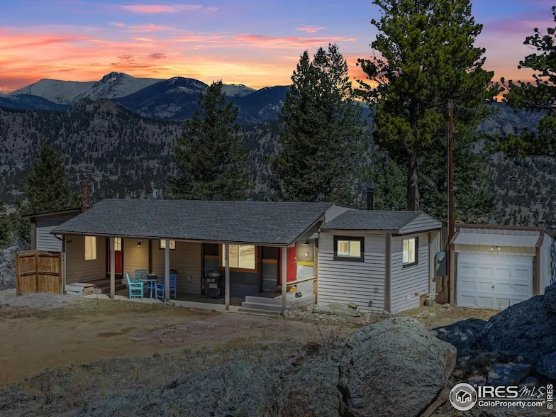 2 BR Licensed STR on flat acre with amazing views, rock outcroppings and several outbuildings. This nicely remodeled manufactured home with a stick-framed addition sits at the edge of the lot with views of the snow-capped peaks of the Mummy Range, Lumpy Ridge and the Estes Valley! There's a 1 car garage and a 3 car garage, and a workshop. The location offers outstanding access to the outdoor opportunities that make Estes the special mountain town it is. Short drive to restaurants, breweries, Rec Center, Dog Park, Golf Courses and playgrounds. Minutes from downtown Estes, Lake Trail & Rocky Mountain NP. Marys Lake is just up the hill. Enjoy the scenery and wildlife watching, including elk herds roaming through. Comes furnished with a transferrable STR license for a turnkey investment. Ready for some Mountain Time?!