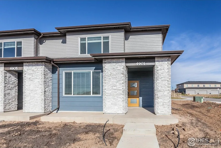 Copperhead by Hartford Homes. New construction townhome in the Wilder at Timnath Ranch community. This thoughtfully designed home offers 3 spacious bedrooms, 2 bathrooms, and a convenient powder bath on the main level. The open-concept layout seamlessly connects the living, dining, and kitchen areas. Fenced front courtyard. The kitchen is equipped with LG stainless steel appliances, including a gas range, microwave, dishwasher, and refrigerator, paired with Eucalyptus painted maple cabinetry and quartz countertops. Vinyl plank flooring runs through the entry, kitchen, dining, bathrooms, laundry, living room. All bedrooms are located on the upper level, alongside a laundry room complete with a washer and dryer. Additional features include central A/C, a garage door opener with keypad. 2in white faux wood blinds. Located across from Bethke Elementary. PHOTOS FROM ACTUAL HOME. ASK ABOUT CURRENT LENDER OR CASH BUYER INCENTIVES.