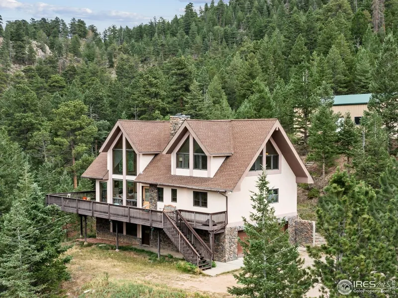 Amazing 42-acre property across three lots, offering stunning snow-capped mountain views and total privacy, just 10 minutes from downtown Estes Park. Adjacent to the National Forest for endless hiking, exploring and wildlife. Immaculate home features a soaring greatroom that takes in those views, native stone fireplace and pine ceilings. Spacious primary suite with spa-bath and walk-in closet, plus a versatile loft with built-in bunk beds and perfect for a home office. 2 additional bedrooms and baths, plus huge rec-room downstairs. Wrap-around deck and 2-car attached garage completes the home. Bonus 40x24 shop is perfect for hobbies, toys and storage. Offered fully furnished and ready to enjoy. A rare offering of 3 lots and a fine mountain home, your own truly private oasis for $1,350,000.