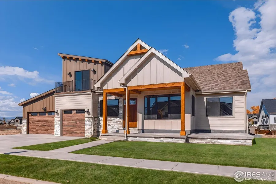 OPEN HOUSE SAT. Dec. 6th 1:00 PM-4:00 PM! Welcome home to a place that truly has room for your whole life to unfold,and in a neighborhood with no metro tax, keeping your monthly costs lower from day one. This thoughtfully designed 1.5 story home in Harvest Ridge combines main-level living with the comfort, flexibility, and modern style buyers are looking for, plus an incredible 5-car garage for all the extras. Step through the front door into a bright, grand foyer with an open stairwell leading to the finished basement. From there, the home opens into a warm, inviting living room where a floor-to-ceiling stone fireplace becomes the heart of the space. The kitchen is a dream for anyone who loves to cook or gather, with an oversized island, walk-in pantry, gas range with hood, and room for a truly generous dining table. The main-level primary suite feels like its own retreat, with huge windows, beautiful ceiling beams, and plenty of room to unwind. The ensuite bath offers a large walk-in shower and a spacious vanity with tons of storage. You'll also find a second bedroom, powder room, full bath, dedicated office, and laundry room all on the main floor, designed to make everyday living easy. Upstairs, the loft is a bonus space that adapts to your life: a guest suite, an office, a playroom, or a cozy second living area. Step out onto the private loft balcony to catch those famous Colorado mountain sunsets. The finished basement has its own entrance and bright garden-level windows, embracing a true "Next Gen" layout. It's perfect for long-term guests, young adults who want extra independence, or anyone who needs a separate living space without being far from home. And if you've been dreaming of extra garage space, here it is. An oversized 3-car garage plus an additional 2-car tandem bay means storage, hobbies, and adventure gear all have a place. This isn't just a house, it's a home built for connection, comfort, and all the chapters still ahead