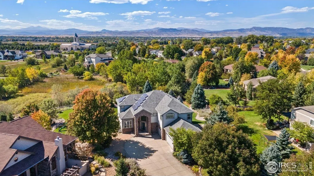 Imagine breathtaking mountain views and picturesque sunsets from nearly every window in your new home! Nestled on a tranquil cul-de-sac within the coveted Westchase Reserve neighborhood, this masterpiece sits on a 3/4 acre Estate lot and backs to large private open space with a pond and farmland. Mature trees surround the expansive backyard, creating a serene and secluded park-like sanctuary - a truly rare setting within the city! This recently updated 2-story features 4 bedrooms, 4 baths, a main floor office, and separate family & living rooms. Large picture windows bathe the interior with sunlight and frame the unobstructed Rocky Mountain views. The gourmet kitchen is a chef's dream, featuring modern Tharp cabinetry and high-end Dacor appliances. The impressive solid walnut block island is an absolute showstopper! The dining room showcases a custom-designed wet bar w/ additional sink, fridge & freezer drawers. Upstairs, the spacious Primary suite is a true retreat, featuring a luxury 5-piece marble tiled bathroom w/ dual sinks, deep soaking tub, walk-in shower, and two walk-in closets. Three additional bedrooms, each with direct bathroom access, offer ample space for family & guests. The walkout basement receives abundant sunlight throughout the day and provides nearly 2000sf of endless possibilities. Escape outdoors to your own private oasis! An elevated Trex deck and large stamped patio, along with the colossal yard, are all surrounded by mature landscaping and provide plenty of room to run, play, garden, and entertain. Recent upgrades include all new hickory hardwood floors and modern trim on Main, new interior paint throughout, updated tile in powder bath and laundry, new lighting & ceiling fans, fully paid solar panels, newer carpet, roof, exterior paint and windows.