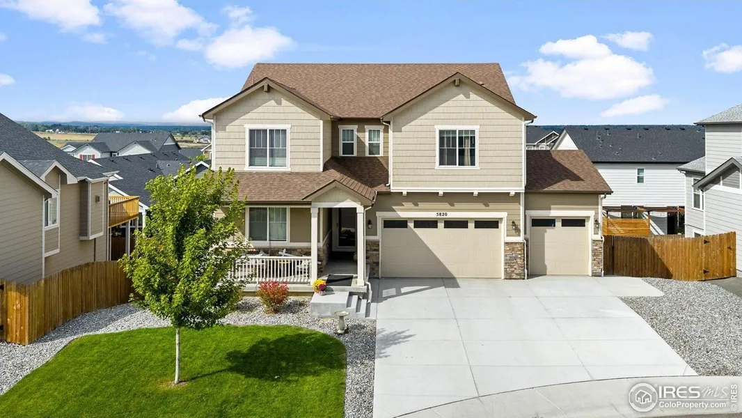 Built in 2021, this 4-bedroom, 3.5-bath home blends Windsor living with quick access to SE Fort Collins shopping, restaurants, and I-25. The main level features a two-story entry, private study, powder room, and an open-concept great room with gas fireplace. The kitchen includes granite counters, center island seating, stainless appliances, walk-in pantry, and a mudroom leading to the 3-car garage. Upstairs, three bedrooms enjoy privacy with no shared walls, plus a loft/flex space, two full baths, and a convenient laundry room. The fully finished walk-out basement adds a spacious recreation area, full bath, and additional bedroom or office. South-facing orientation brings natural light and quick snowmelt in winter. Outdoor living features an upgraded paver patio with low-maintenance landscaping, ideal for outdoor dining or relaxation. Located on a quiet cul-de-sac within a well-kept community, this home sits minutes from Front Range Village, Twin Silo Park, and popular coffee options like Ziggi's and Dutch Bros. Groceries, Costco, and additional retail are close by, with easy routes into downtown Windsor for local dining and access to Windsor Lake and Boardwalk Park. HOA $298 quarterly.