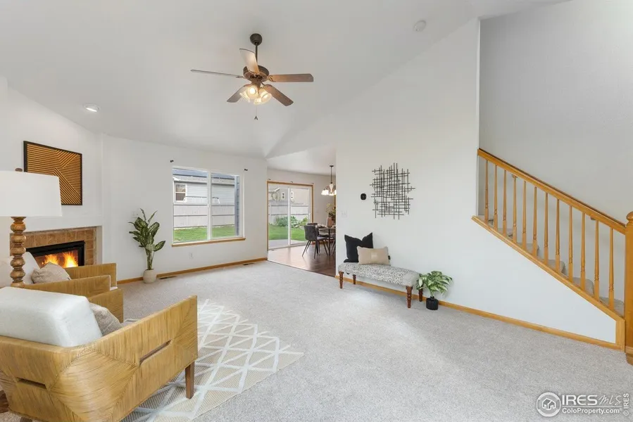 Welcome to this beautiful four-bedroom home in Wellington's highly desirable Buffalo Creek neighborhood! With brand-new carpet and fresh paint throughout, this home feels bright, refreshed, and completely move-in ready. Step inside to a spacious entry and living room featuring vaulted ceilings, abundant natural light, and a cozy gas fireplace-creating a warm, inviting atmosphere. The open dining area flows seamlessly into a well-appointed kitchen with wood floors, generous counter space, ample storage, and a custom tile backsplash-perfect for both everyday living and entertaining. Upstairs, you'll find three comfortable bedrooms, including a large primary suite with a walk-in closet and full bath. The fully finished basement expands your living options with a large family room, an additional bedroom, and a full bath-ideal for guests, a home office, or a recreation space. Enjoy peace of mind with quality upgrades throughout, including Pella windows and major systems-furnace, A/C, water heater, and roof-all replaced within the past five years. Conveniently located near schools, parks, and downtown Wellington, this home offers exceptional comfort, quality, and small-town charm. A wonderful opportunity and an incredible value!