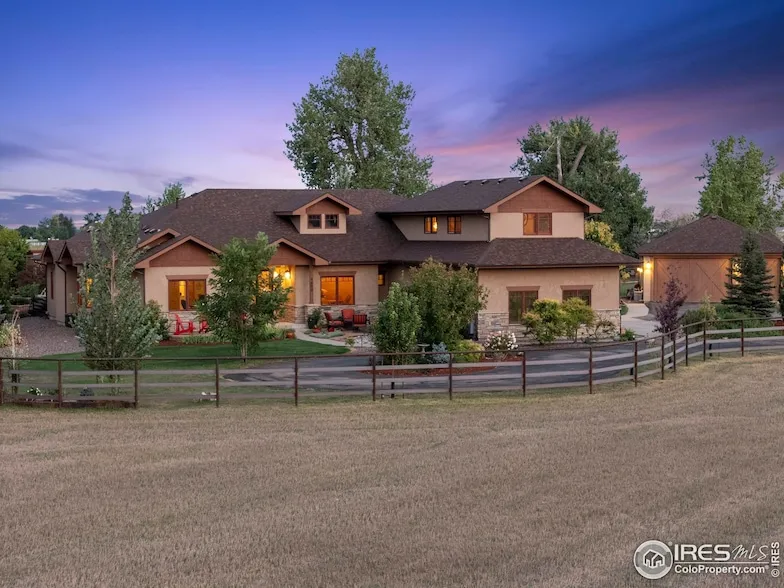Set on 5.3 acres in west Loveland, this meticulously maintained, spacious 5-bedroom, 4-bath ranch style hobby farm offers a rare blend of comfort, versatility, and true Colorado lifestyle. With over 4,200 square feet of finished living space, the property is designed for both everyday living and entertaining - indoors and out. Inside, the main-level primary suite includes a five-piece bath with soaker tub and dual walk-in closets. The gourmet kitchen features a double oven, walk-in pantry, and island seating, opening to generous living spaces accented by Brazilian cherrywood floors, Venetian plaster walls, and custom tile details are throughout. The upper-level loft/rec room provides an additional living space, perfect for games, hobbies, or gatherings. The property also includes a 3-car attached garage plus a 1,218 sq ft detached heated and air conditioned workshop with radiant floors. ...