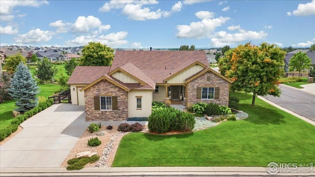 Welcome to this exquisite ranch-style home situated on a premium corner lot with mountain views in desirable Timnath. This meticulously maintained residence offers three spacious bedrooms on the main level, complemented by luxury finishes and high-end appliances throughout. BRAND NEW roof! And the newly finished basement (2023) functions as its own living space, complete with a full kitchen and separate laundry facilities. Start your mornings with coffee on the extended, partially covered patio while enjoying the peaceful surroundings, or end your day with al fresco dining in your private outdoor retreat. This home is made for entertaining and the manicured lawns and professional landscaping create a stunning backdrop for outdoor living. Embrace an active lifestyle with easy access to walking paths and trails throughout the community. Ideally located minutes from Timnath's new high school, beautiful golf courses, and outdoor recreation, while offering convenient access to I-25 with downtown Fort Collins less than 15 minutes away. This remarkable home combines luxury finishes, thoughtful design, and an ideal location for those seeking both comfort and an engaging lifestyle. Also a 3 car garage provides plenty of space for your vehicles and toys!