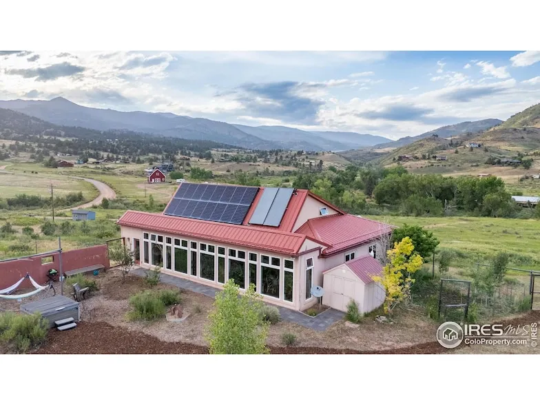 A rare opportunity in the foothills of Lyons, this 13-acre permaculture retreat feels like something out of a dream, but it's very real and very ready. Designed in consultation with renowned sustainable architect Michael Reynolds of Earthship Biotecture, the home draws inspiration from Earthship principles but is conventionally built, offering the best of both worlds: sustainable design without sacrificing daily comfort, utility, or aesthetics. This 3-bedroom, 3-bath home is a study in off-grid elegance and purposeful design. Vaulted ceilings, expansive windows, and a passive solar layout fill the space with warmth and light. The integrated greenhouse room is more than a conversation piece. It's a thriving, year-round tropical oasis with mature banana, fig, and olive trees. Interior windows open into the greenhouse room, allowing natural light and lush greenery to serve as a living backd...
