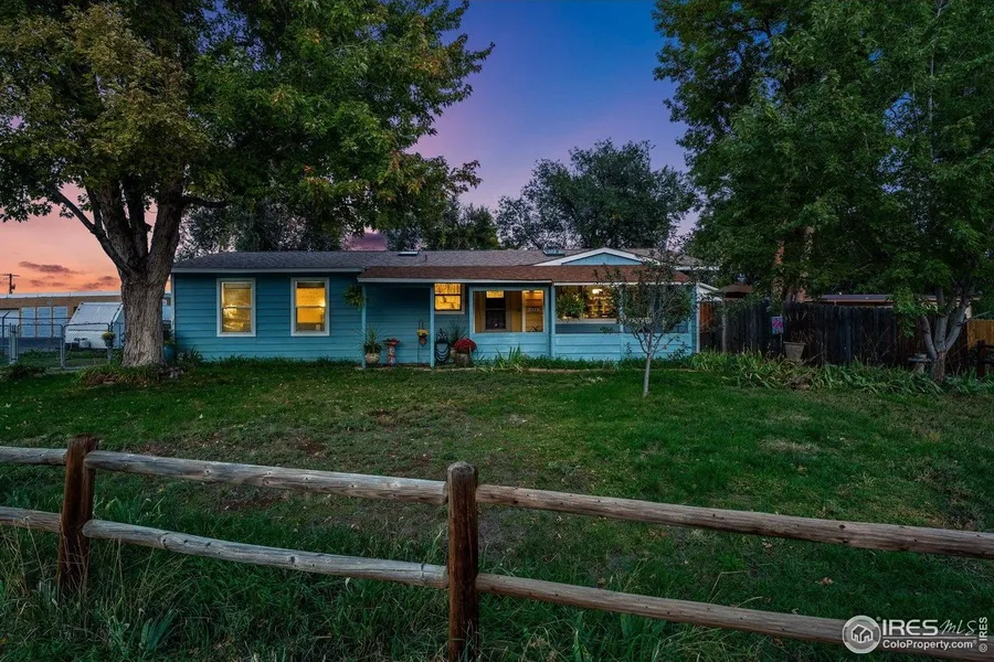 Welcome to tranquil living, where serene country charm meets modern convenience. Enjoy easy access to the vibrant offerings of Fort Collins and nearby I-25. Nestled in the county, just outside the city limits, this inviting home blends comfort, character, and thoughtful design. Step into the warm natural light of the living room, where vaulted ceilings create an airy, open feel-perfect for cozy evenings or casual gatherings. The spacious primary ensuite features a large bathroom with an oversized walk-in shower and dual shower heads. This is just one of three bedrooms and two bathrooms in this well-thought-out home. An expansive, sunken family room invites you to relax, host, or create-complete with an attached flexible office space ideal for working remotely. The dining area and updated kitchen, with beautiful cabinets and a farmhouse sink, flow effortlessly to the outdoors, where multiple entertaining areas make indoor-outdoor living a breeze. The generously sized, fenced yard offers space to relax, garden, and gather. Raised beds, a storage shed, and an oversized two-car garage make it practical, while raspberries, blackberries, rhubarb, and a plum tree make it a gardener's paradise. A charming covered front porch provides a warm welcome, and the peaceful country setting-with no HOA or metro district restrictions-makes this property a rare retreat just minutes from everything Fort Collins has to offer.
