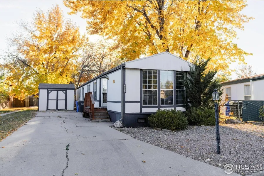 1985 Schult 14x70 Single Wide Home on it's own land in SW Loveland! NO MONTHLY PARK RENT! 3 Bedrooms, 1.5 Baths. Sunny Front Kitchen. All Appliances including W/D. Master Bedroom has Bow Window w/Built-In Dresser Drawers & Large Closet. Huge 12x12 outdoor shed w/lots of shelves for storage. Lot can be completely fenced. Low annual HOA fee $134. Home has not been purged to land so will most likely need a cash offer or private funding. Great investment opportunity! Currently renting under market for $1500 per month.