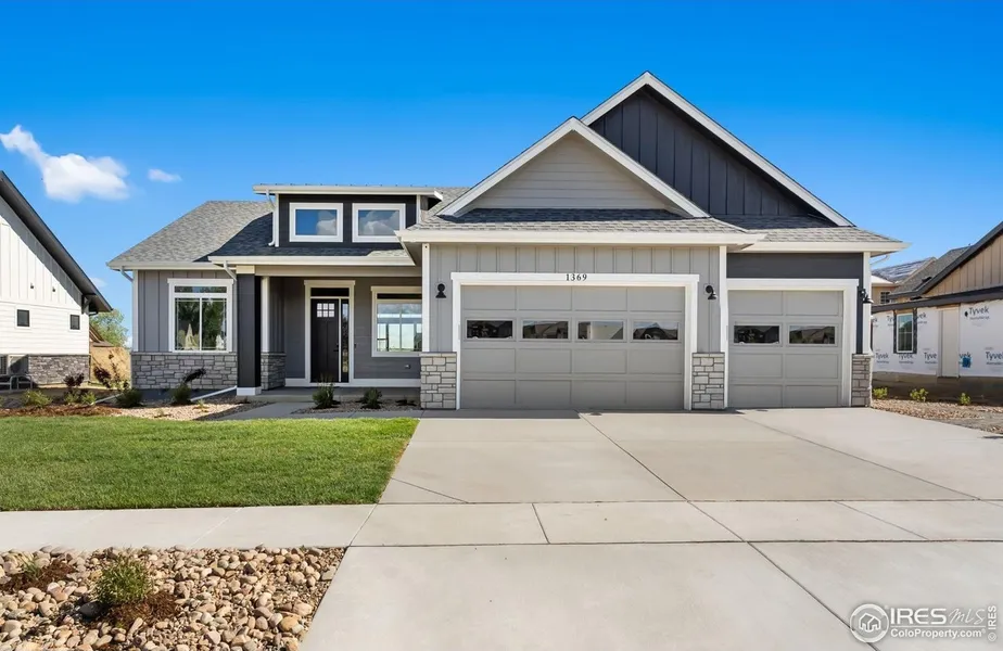 Open the door to The Remington by Pagel Contracting, a meticulously crafted ranch home in Berthoud's premier neighborhood Harvest Ridge. Too many features to list, so set up that showing! You will love the 10' ceilings and abundance of windows allowing that Colorado sunshine to light up the vast great room, kitchen and dining area. Arrange your decor to make the floor to ceiling tile LED fireplace surround the perfect focal point. Cook up a storm or have the meal catered, these custom kitchen cabinets go all the way to the ceiling making sure you have enough room for all your culinary wares. Recessed lighting/outlets and appliance placement provides a sleek design and allows a plethora of countertop workspace. While your favorite people are gathered around the HUGE quartz island, they can charge their devices from the super cool pop-up outlets. Don't forget to look for the hidden pantry! Retreat to your suite adorned with custom batten accent wall. Primary bath has 3/4 shower with poured pan base and bench seating. Vanity toe kick motion sensor lighting, backlit mirrors and linen cabinet are some added features. With an additional 4 bedrooms (2 on the main floor and 2 in the basement) you will have room for everyone! Descend to the basement where you will find a customized wet bar and room for additional entertaining and several large storage areas. This home has been designed with your comfort in mind. High efficient heat pump and tankless water heater with recirc line, not to mention our superior quality building materials will keep those utility bills low. Smart LED lighting throughout the home can be managed on the wall or with a swipe on your device. Front and back yard landscaping is included so you begin to enjoy the Colorado outdoors and a view of the mountains from your covered patio. Let's make this your home!