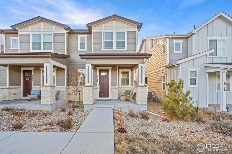 Welcome to this beautifully designed three-bedroom, two-and-a-half-bath townhome in the Kinston at Centerra community. The open-concept main level features a well-appointed kitchen with a large pantry, quartz center island, and stainless steel appliances, all flowing seamlessly into the adjacent dining area. The inviting living room offers a comfortable gathering space, complemented by a convenient powder room and access to a relaxing covered patio. Upstairs, the thoughtful layout continues with a convenient laundry area and three generously sized bedrooms. The spacious primary suite serves as a private retreat, complete with a large walk-in closet and an ensuite bath featuring double sinks. With modern finishes, a functional floor plan, and a prime location near shopping, dining, and amenities at Centerra, this townhome offers comfort, style, and convenience in one exceptional package.