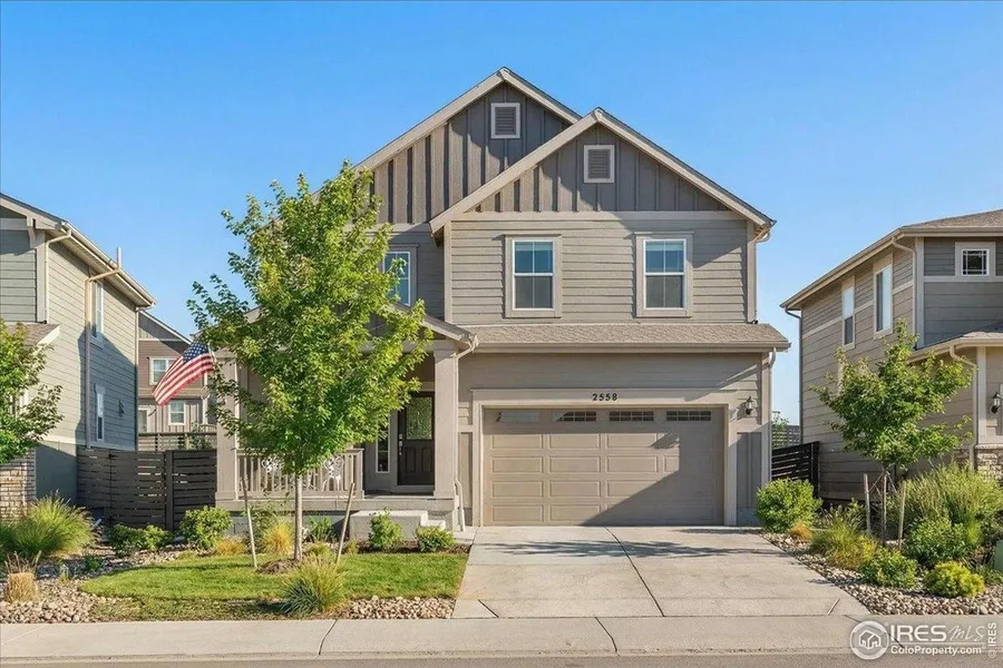 Step into this bright and inviting professional interior painted SMART home. This 3-bedroom, 3-bath retreat offers 2,788 total SF with 1,894 SF finished. Full of upgrades this home was built in 2022 and offers an over-sized natural gas line permitted for a gas range (duel fuel range) in the kitchen and a fireplace/fire pit/tankless hot water heater options for the future. The builder electric range has been upgraded to a Duel Fuel Range with a 5 burner gas cook-top and a large electric/confection/steam oven. Enjoy the low decibel dishwasher for quiet time in the open concept. The upstairs landing and bedroom 3 offer the wood LTV flooring for easy cleaning. The garage floor has epoxy for a clean garage. Enjoy the luxury of oversized closets throughout the house. A large laundry room is located on the second floor for easy access. The yard has been professionally landscaped offering multiple lush plants. There is a backyard patio with a wrap around sidewalk from the back to the front. With the multiple type of plants, garden area, and the patio, the backyard brings an oasis of peaceful serenity. Centrally located to I-25, HWY 34, and many Northern Colorado communities. If you are looking for a peaceful neighborhood with direct access to many accommodations and walking/biking trails this is your property. Kinston at The HUB (Clubhouse) offers simply interior and exterior comfortable places to sit, gather with friends, share a conversation and lose track of time. It truly embodies the building of community.