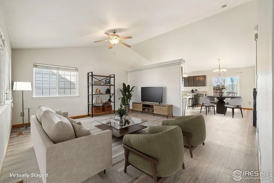Ask about our Preferred Lender incentive. Gorgeous West Loveland home nestled near the foothills with NO METRO. This bright & beautiful 4 bed/ 3 bath home features an open flowing floor plan, vaulted ceilings, new luxury vinyl plank flooring, & tons of natural light. Large eat-in kitchen features granite countertops, SS appliances, & dark cabinetry. Two separate living spaces make this home easy to host & entertain. Large primary bedroom with 5-piece bath & spacious walk-in closet. Amazing west facing lot with mature trees. Oversized 3-Car garage & storage shed in backyard. Walking distance to Ponderosa Elementary and Erwin Middle. Convenient location easy access to golf, Estes Park, and Mahaffey Park.