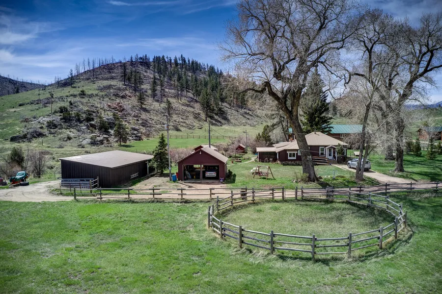 Rare gem of a horse property bordering national forest with horse boarding income potential. 2 tack rooms, machine shed, corral, hay barn and loafing shed. Non-irrigated hay field yielded 5.5 tons of high quality hay last summer. A year-round creek, a seasonal spring and pond on property. Abundant views and wildlife! This quaint original farmhouse to the valley boasts lots of storage, original wood floors, various updates, and is surrounded with flowers, fruit trees and bushes. 2-3 mile ride to the Poudre River! New roof coming soon.