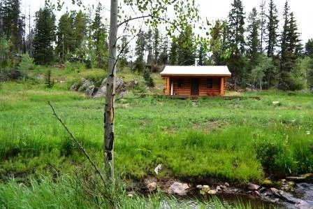 Under Contract! Nestled along Sheep Creek, 1 room log cabin sits privately on 35.2 acres. Creek has been mitigated to maximize the fishing habitat, and meanders through meadows, granite cliffs and is shaded by massive aspens along the banks. Located at the end of the road with National Forest frontage, this is the perfect hunting/outdoor recreation property on the market. The wraparound deck takes advantage of the views and mountain air! 4x4 access and lots of local wildlife nearby, make this gem your weekend getaway!