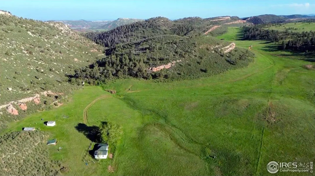 PRIVATE SHOWINGS ONLY. Secluded 40-Acre Retreat Bordering Red Mountain Open Space. Escape to nature at 1364 Red Bluff Road, a rare 40-acre parcel bordering Larimer County's Red Mountain Open Space on two sides. This exceptional property offers privacy, breathtaking views, and direct access to thousands of acres of preserved wilderness-perfect for hiking, wildlife watching, and outdoor recreation. Elk herds and other wildlife frequent this valley, adding to its charm. The seasonal 2-bedroom, 1-bath cabin is a charming off-grid getaway with rustic character. A gravity-fed water system is sourced from a natural spring on the property, while a 2-tank septic system with leach lines supports the bathroom. A wood-burning stove provides cozy heat, and propane appliances-including a range, oven, refrigerator, and lighting in the kitchen and living area-ensure functionality without electricity. Additional features include: 100-gallon leased propane tank, a fully fenced perimeter with barbed wire fencing, locked gate entry for added security, and a roof replaced 8 years ago. This property is ideal as a seasonal retreat, hunting base camp, or off-grid escape as you plan for your future home build. Multiple potential homesites are scattered across the diverse 40-acre landscape, which features a lush grassy valley, gently rolling hills, forested areas, striking red rock outcroppings, and seasonal red rock waterfalls that come to life during heavy rainstorms. Whether you're seeking solitude, adventure, or connection to nature, this unique property offers it all-just 45 minutes from Fort Collins. Showings must be accompanied by a licensed Agent - no drive by traffic as this is a private road.