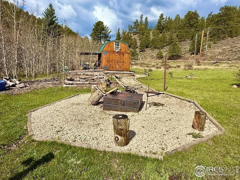 Escape to Nature - Private Mountain Getaway with Creek, Forest Access, and Cabin Potential - Nestled in a quieter section of the Crystal Lakes community with easy access year-round, this parcel is a rare find for nature lovers looking to camp now or build later. North Lone Pine Creek runs through the property, offering a soothing backdrop and a sense of seclusion. A sturdy bridge crosses the creek, giving access to both sides of the land and making it easy to explore. A flat, level building site is ideal for a future home or weekend cabin. Backing directly to Roosevelt National Forest, the lot offers immediate access to thousands of acres of public land-perfect for hiking, wildlife watching, or just enjoying the solitude of the mountains. You'll also have access to Panhandle Reservoir for fishing, and miles of nearby ATV and hiking trails for adventure right out your door. Utilities are ready with electricity on the pole. A 10x12 shed with a loft provides a comfortable basecamp and is already wired for 110v power. The spray-foamed loft adds insulation for cooler nights, while the shed includes a TV, DVD player, RV refrigerator, and a 4-burner propane cook stove with oven. A lean-to on the side adds extra storage, and a double-door entry opens to a large patio platform-ideal for gathering or relaxing. A designated 8x8 RV drive-up platform adds convenience for weekend getaways, offering a ready-made spot to park and settle in. The gravel fire pit area is a true highlight-perfect for relaxing evenings under the stars with a spacious, well-maintained seating area ideal for gathering with friends and family. A 6x8 outhouse shed with a small vault is also in place, providing added comfort and functionality. Fire pit use will need to be re-approved by the community for new owners. Whether you're looking to set up camp for the summer or build your dream cabin in the woods, this property provides the space, privacy, and access to nature you've been searching for.