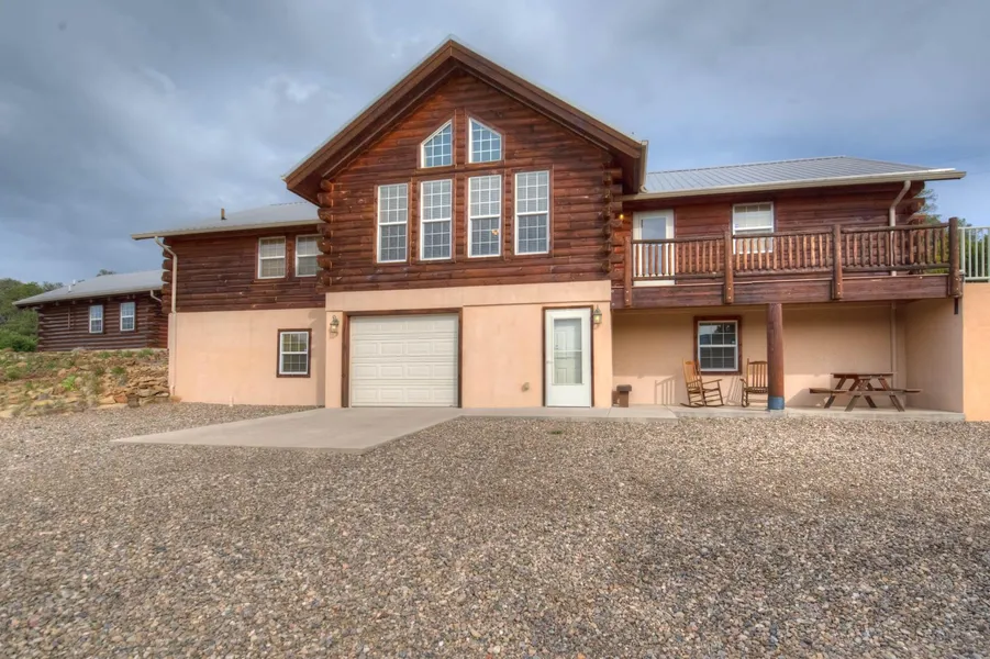 Impeccably maintained log sided house with log guesthouse. The main home provides easy living with an open concept kitchen & living space, attached 2-car garage, main level master suite, plus 2 guest bed & bathrooms. Downstairs awaits a dream shop/studio with room for every project that you look forward to doing. There is a 2-car tandem garage, a half bath, a shop, and 2 additional rooms that can be used as bedrooms or a home office. The log guesthouse is a perfect mother-in-law or just a fantastic place for your friends & family to enjoy. It includes a kitchen, bath, and living/sleeping area. Also included is a detached 1-car garage. The land is diverse with an established walking trail and big views. With city water & easy access to town, this property offers the best of both worlds.