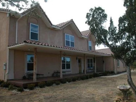 The two story home boasts two living areas, one with rock fireplace and two veranda porches and deck....custom tile and stucco with new pro panel roof. The Master bedroom/bath is on the first floor layout of 1760 sqare feet with porch additions and a 552 square ft. attached garage. Home is serviced by its very own well and septic system. The upstairs (1496 sq. ft.);has another bedroom/bath suite, great room, wet bar and two additional guest bedrooms/office. A guest bathroom is on the first level with a large two-room custom kitchen, a formal dining room and laundry mud room with utility sink.All in all it is a very lovely, comfortable home with many upgrades and features. The backyard is like owning three football fields with a ponderosa forest bowing to the Views. Call now for an appointment to View....owners have relocated and have priced this home to sell.