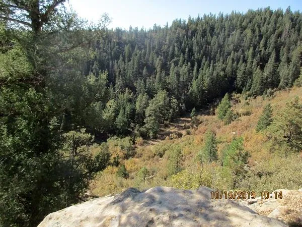 35 acres of various terrain and vegetation, with meadows, sandstone formations, tall pines, views, and a road to access the bottom. Great build/campsite on top.