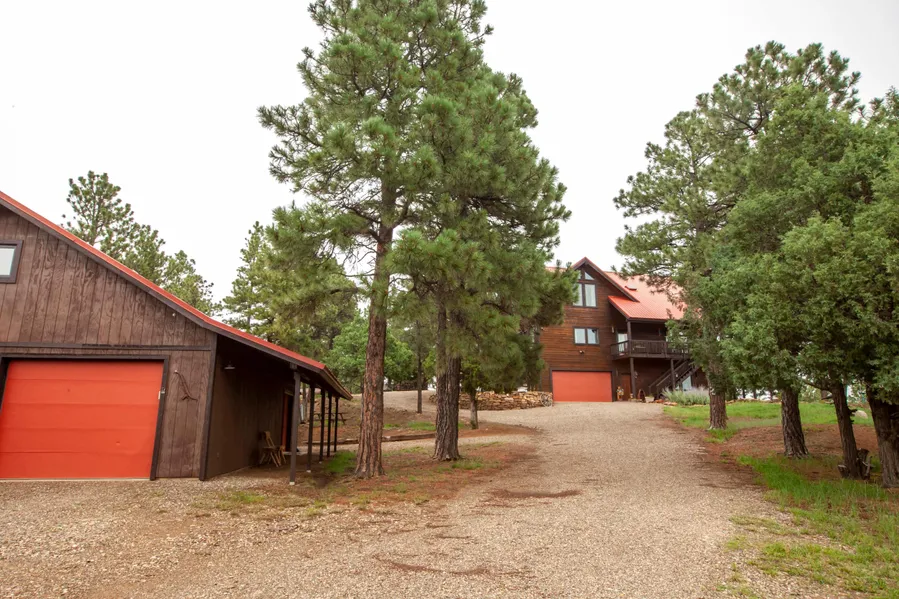 Take a Stroll Down Wildwood Lane... If a serene Lifestyle change or Rustic Second Home with Stunning Panoramic views and 35 Acres to enjoy is in your future....Call us now for your personal showing. This beautiful country cabin with 3336 sq feet of living space featuring 3 bedrooms and 2 1/2 bathrooms comes fully furnished. A 1200 sq foot wrap around deck highlights one of the most spectacular views in Santa Fe Trail Ranch. This property is elegant and comfortable and made to live and entertain in style. Features include: -Three level cedar sided Artisan Western designed home with additional cabin and approximately 1200 sq foot shop with loft and attached machine sheds. - 26 foot vaulted cathedral ceilings, knotty pine tongue and groove beamed ceilings. Attached ground level garage is 563 sq ft with utility rooms.