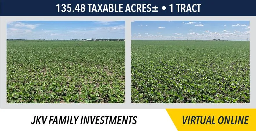 The JKV Family Investments farm will be sold on a price per acre basis, based on taxable acres.