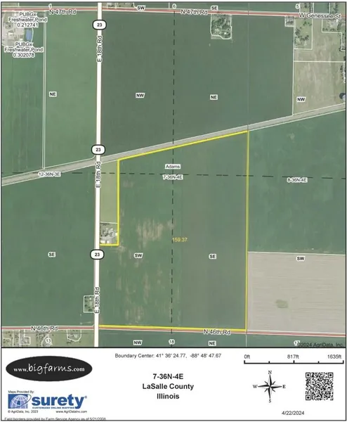 163 acres of vacant farmland available just outside of Leland, IL. This property has a Soil PI of 140.7 and nearly 100% tillable acreage and frontage on E 18th Road and N 46th Road. Excellent yield history with high soil fertility levels.