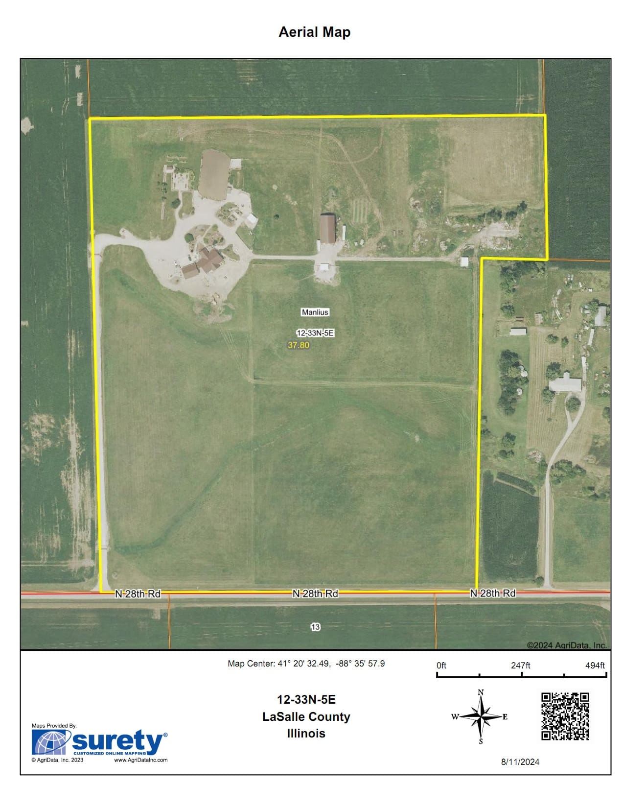Situated just north of Seneca, IL and a couple miles south of I-80, this property offers the best of both worlds. Enjoy the serenity of the rural country setting, while also being within 1.5 hours to Chicago and two major airports. A short drive to the west, local state parks can be enjoyed and offer additional riding trails if desired.
