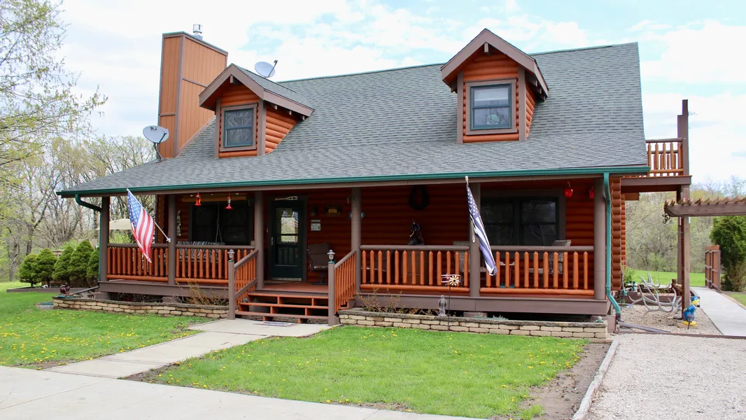 Log home on 5 Acres in Seneca School Dist! Horses welcome. Log home offers 3 bdrms, 3 full bths, & lots of room for entertaining! Kit w/island, din area, liv rm w/gas FP on main level. All appliances stay. Up stairs roomy loft area, master bdrm w/deck & full bth. The basement is finished with a family rm w/dry bar. Pool table stays. Another full bath. Small office area. Laundry room, and another room they use for storage. Off the dining area is a multi level deck for enjoying summer evenings. Enjoy watching the sunset on the nice front porch! The 30x40 pole building is a heated garage/shop area. There is a gravel parking pad next to it for an RV or what ever you need. 5 rolling acres of open space & wooded ravine for hiking. This home is very well made! full logs w/notch & groove locked. Pella windows. 6 panel doors through out. 30 yr shingles. Come and fall in love w/nature!! WARNING GP...