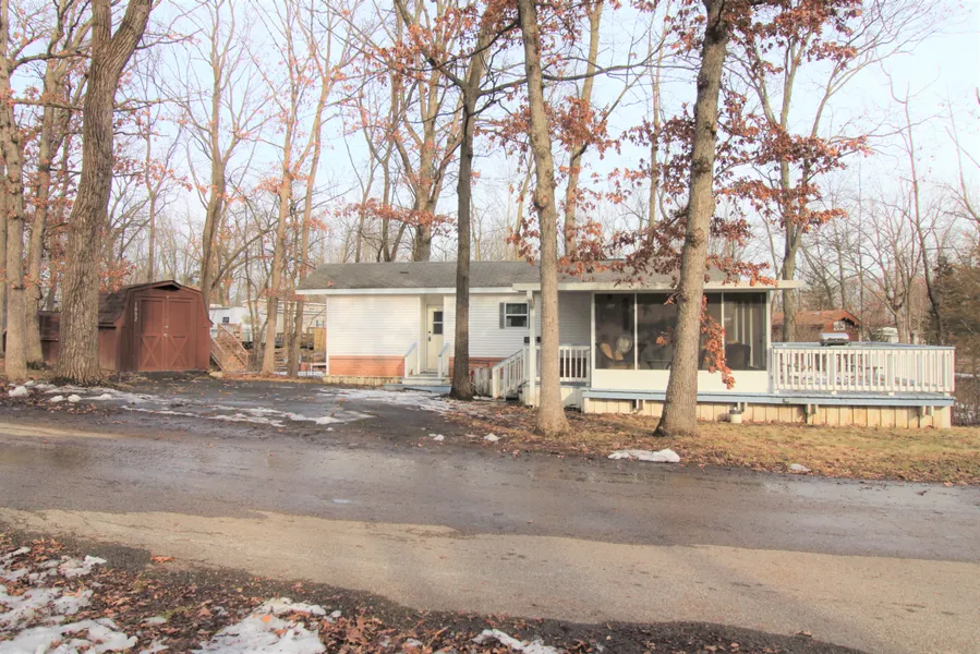 Enjoy this serene setting,nature & colors of the seasons! Make this your weekend escape or long vacation spot! This cute home has a Spacious Bedroom with 2 Closets, Built-in Dressers, Attached Shelves, Ceiling Fan, and Several Windows for natural light! Getting guests? Plenty of room in the Living Room/ Dining Room area! Kitchen has lots of Cabinets, a Gas Stove, Microwave & Large Refrigerator! A Full Bath with Tub & Shower. The Enclosed Screened porch will allow you to relax many summer nights! A large deck for entertaining! The shed will come in handy to store your belongings! Plenty of room on the Driveway to park your cars! Resort has 2 heated pools, stocked lakes, horse boarding,laundromat, restaurant, bands, hayrides, weekend activities for kids & adults! Gated entrance with 24 hour security. A Year Round Get Away!