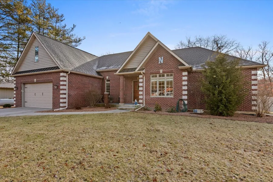 Welcome to a masterfully renovated lakefront 4 bedroom 2.5 bathroom home in the highly desirable Four Lakes Subdivision! This homes is clad in customizations from the second you drive up, full brick exterior with high end windows, and a large 2 car garage! Upon entering the home you are greeted by a formal entry with a office/study to your right and the renovated eat in kitchen to your left with stunning 42" cabinets, butcher block countertops, and beautiful stainless steel appliances! Just beyond the entry of the home is your great room with 14+ foot coffered ceilings, and floor to ceiling windows looking out on to your brand new screened in porch, deck, and fully fenced in back yard with views of the fully stocked lake with your own private dock! With this split plan ranch, just behind your great room are 2 spacious bedrooms and a beautiful custom full bathroom, and opposite of these rooms just behind the kitchen is your Primary bedroom with massive walk in closet, marble clad bathroom, and private porch with brand new hot tub just to elevate your owner experience! head down to the fully finished basement offering an additional 2000+ sqft of living space with custom drywall work and barrel ceilings and bedroom #4! So much more that you will just have to come and see! Dont delay, make this masterpiece yours today!
