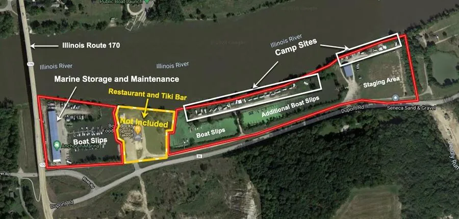 Rare opportunity to purchase an operating Illinois River Marina. The property is best known as Boon Docks the restaurant bar on the south side of the Illinois River in Seneca. Also known as the Anchor Inn. Boondocks in not part of this sale.