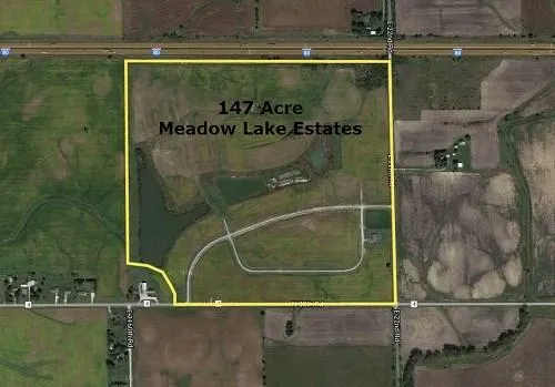 Meadow Lake Estates is a 100 lot country subdivision between Ottawa and Marseilles. 39 Semi-finished lots with only asphalt road needed for completion. Lots are currently being farmed to maintain low real-estate taxes. Minimum lot size is one acre. It boasts frontage on Interstate I-80 and is between two exits at Ottawa and Marseilles. There are 39 Semi-finished lots in phase I, one home has been built. 90.36 acres left for phase II including the detention ponds, approximately 67 tillable acres in phase II. School impact fees have been paid, site has natural gas and electric in place.