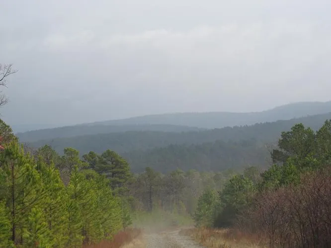 Terrain: Mountain land in the San Bois Mountains of S.E. Oklahoma. Land consists mostly of a Pine/hardwood mix. Has (1) wet weather creek in the Southeast portion of the property.
