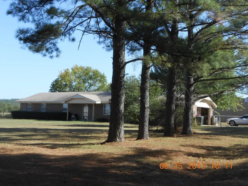 This Horse/Cattle Ranch has a very inviting, alley-like setting with tall Pine Trees at the entrance drive way, 4 ponds, level terrain and improved grasses. The Owners have 10 horses and still produce an abundance of hay! Nearby the house is also a Davis Thermo Steel Building with a wooden front porch to enjoy your coffee or supper on in a peaceful surrounding! This Building is converted to living quarters, equipped with water heater, sink, shower, window air, space wall heater and vinyl floor covering. Its like an apartment and was used for their elder Mom. I got a 17 year old daughter who would just love to have a building like that for her! Now it is leased, but could also be an office if you have a home-based business, there are no restrictions; you can do as you please and can have commercial there too. The propane tank in that location will not stay. However, it is easy to rent one for $49. - Per year.